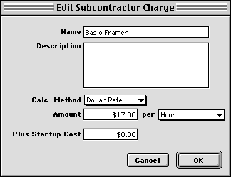 - Choose Cost Setup from the Costs menu, then choose Subcontractor Charges