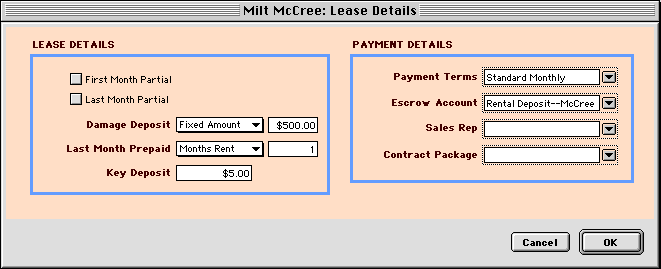 Rent Amount-- When you select a unit, its normal rental amount is entered automatically. Change the field if you're